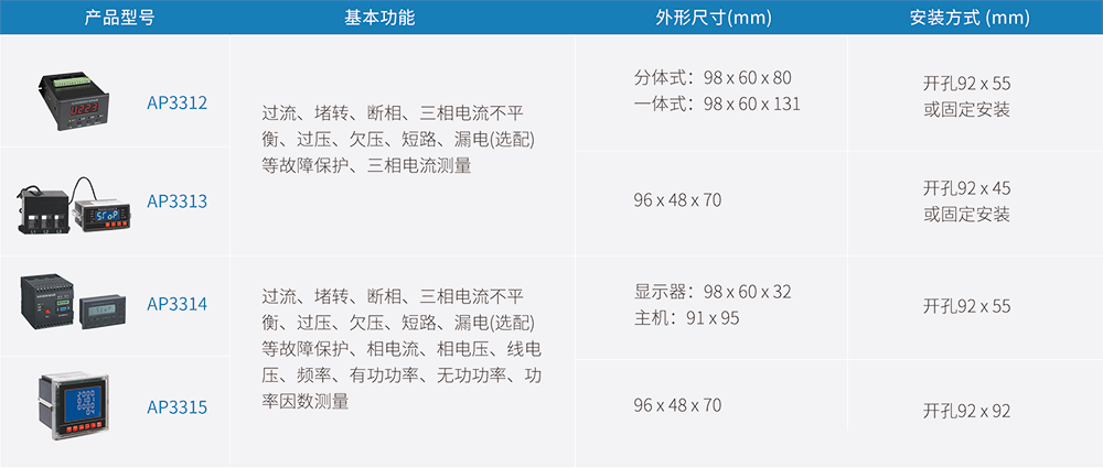 AP331系列智能型馬達保護器適用于AC380V、 AC660V低壓系統(tǒng),裝置基于微機處理器技術(shù),采用現(xiàn)場總線結(jié)構(gòu),是低壓異步電動機和增安型電動機的保護、監(jiān)測和控制的新一代智能化綜合裝置。 除了電動機保護、監(jiān)控功能,還提供了設(shè)備運行和跳閘的記錄以及額定參數(shù)等重要信息,為現(xiàn)代化的設(shè)備管理帶來很大的便利。廣泛用于石油、化工、電力、冶金、煤炭、輕工、紡織等行業(yè)。