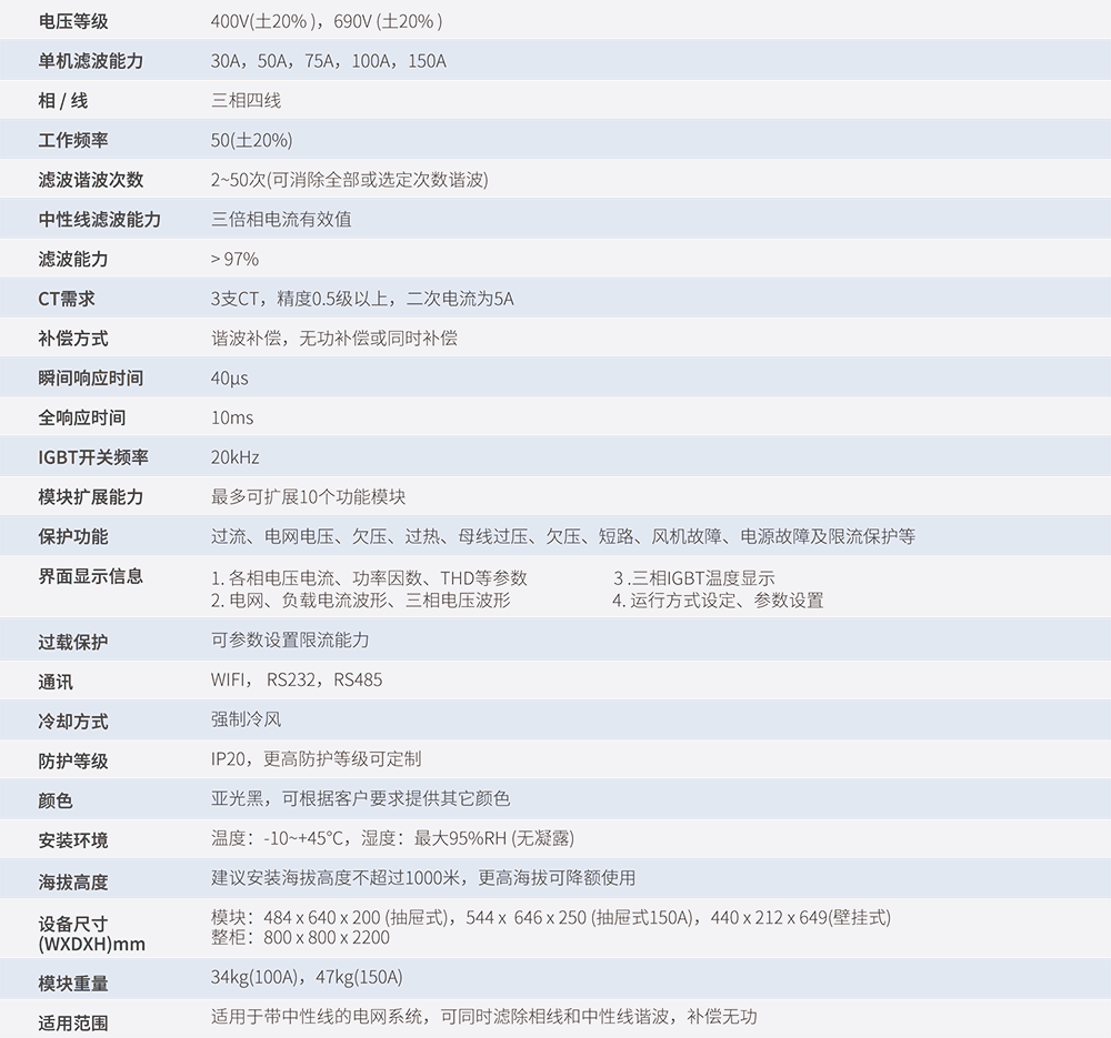 不同容量規(guī)格的AP3511系列有源濾波器可以任意搭配、組合使用,以滿足用戶現(xiàn)場多樣的需求;