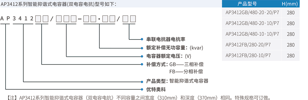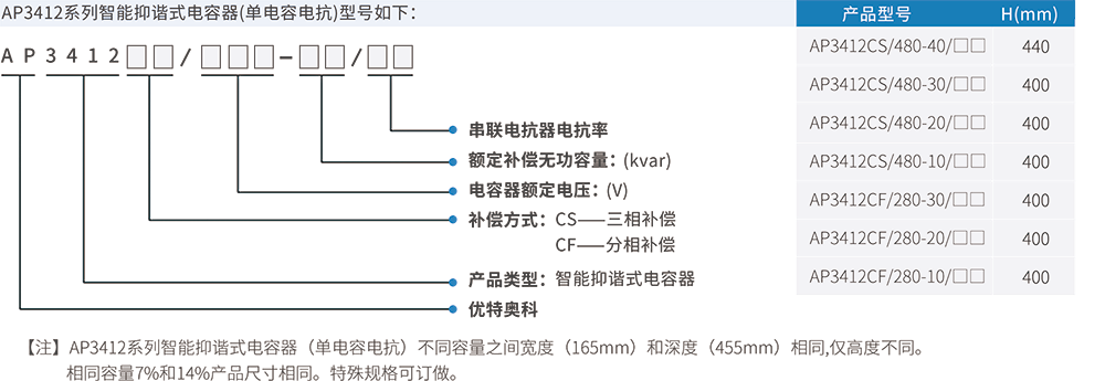 AP3412系列智能抑諧式電容器是由智能測控單元、同步零投切開關(guān)、智能保護(hù)單元、組網(wǎng)單元、顯示單元、一臺(tái)/兩臺(tái)(△型)或一臺(tái)(Y型)低壓自愈式電力電容器、高品質(zhì)電抗器組成的智能無功補(bǔ)償系統(tǒng)。產(chǎn)品具有模塊化、標(biāo)準(zhǔn)化、免維護(hù)等特性,具有零投切、分級(jí)補(bǔ)償、過電流/過電壓/過溫度保護(hù)、故障自診斷、測量、通信、信號(hào)、聯(lián)機(jī)等功能。AP系列智能抑諧式電容器應(yīng)用于電網(wǎng)諧波含量嚴(yán)重的低壓電力系統(tǒng)中,能夠安全可靠運(yùn)行,不會(huì)產(chǎn)生諧波,對(duì)諧波無放大作用。有效的提高了系統(tǒng)功率因數(shù),降低線損,提高電網(wǎng)電能質(zhì)量。 AP3412系列智能動(dòng)態(tài)抑諧式電容器是由智能測控單元、大功率晶閘管投切開關(guān)、智能保護(hù)單元、組網(wǎng)單元、顯示單元、低壓自愈式電力電容器、高品質(zhì)電抗器、放電及風(fēng)冷單元組成的智能無功補(bǔ)償系統(tǒng)。產(chǎn)品具有模塊化、標(biāo)準(zhǔn)化、免維護(hù)等特性,具有快速零投切、分級(jí)補(bǔ)償、過電流 / 過電壓 / 過溫度保護(hù)、故障自診斷、測量、通信、信號(hào)、聯(lián)機(jī)等功能。